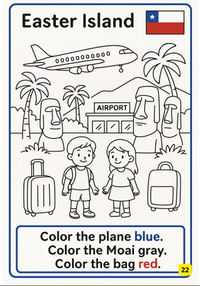 Książka oparta jest na zasadzie “learning by doing”. Każda lekcja to zanurzenie w języku i kulturze: supermarket w Wietnamie, restauracja w Neapolu, lotnisko na Wyspie Wielkanocnej czy safari w Kenii. Dzięki temu dzieci nie tylko poznają słowa, ale od razu używają ich w kontekście.