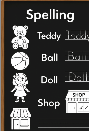 Ćwiczcie razem pisanie po śladzie – to ważny krok w nauce słownictwa i pisowni.