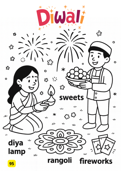 Kolorowanka z kontekstem – czarno-białe ilustracje można kolorować, co sprzyja koncentracji i pozwala dziecku lepiej zapamiętać słownictwo.